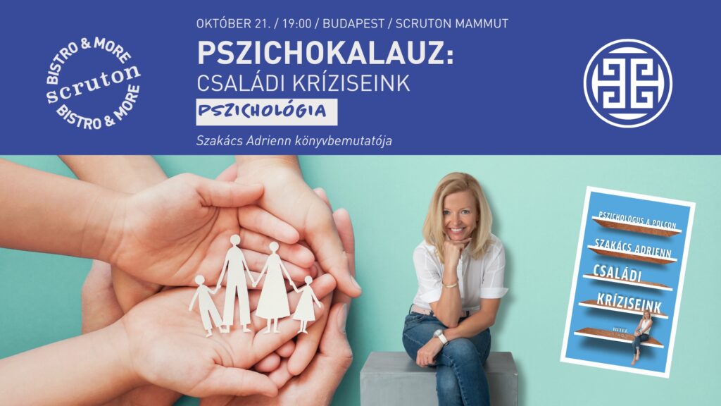 2025.10.21. @ 19:00 – 20:30 – A Pszichológus a polcon sorozat első kötete a „Családi kríziseink” először kerül bemutatásra. Szakács Adrienn Anna pszichológus új könyve, azokhoz az élethelyzetekhez nyújt támaszt, amelyek mindannyiunk számára hordozhatnak kihívásokat, mint például egy gyermek születése, az iskolakezdés, a válás, egy családtag elvesztése, vagy éppen a kamaszkor viharai. A szerző több évtizedes szakmai tapasztalata és saját praxisából […]