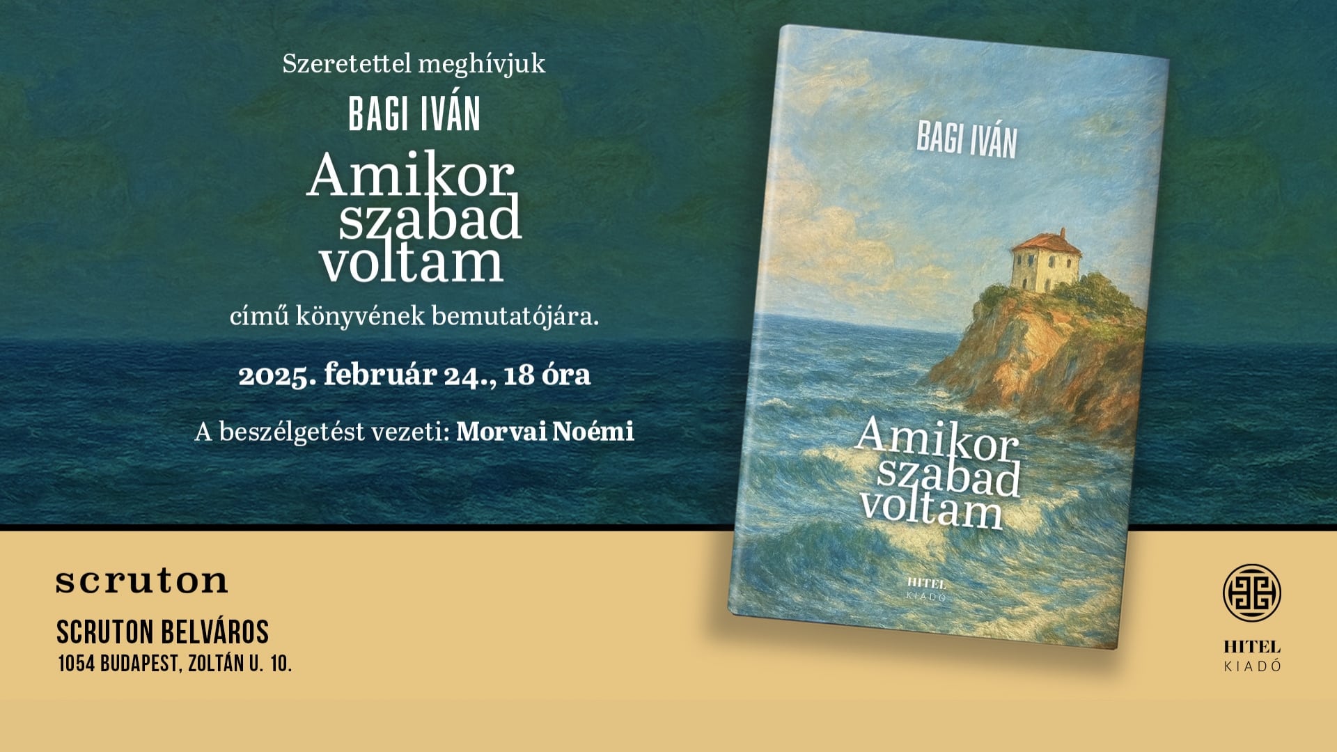 Bagi Iván: Amikor szabad voltam című verseskötetének bemutatójára várjuk az érdeklődőket, amely egy csaknem harminc évet átívelő lírai pálya esszenciáját foglalja össze. A válogatás a korábbi kötetek meghatározó darabjai mellett eddig közöletlen verseket is tartalmaz, így átfogó képet ad egy folyamatosan alakuló, mégis következetes költői hang útjáról.